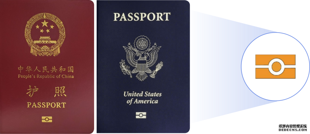 比古代令牌更先进的,是我们生活中已经很熟悉的、内置智能芯片的身份证件,同样也是去中心化的: