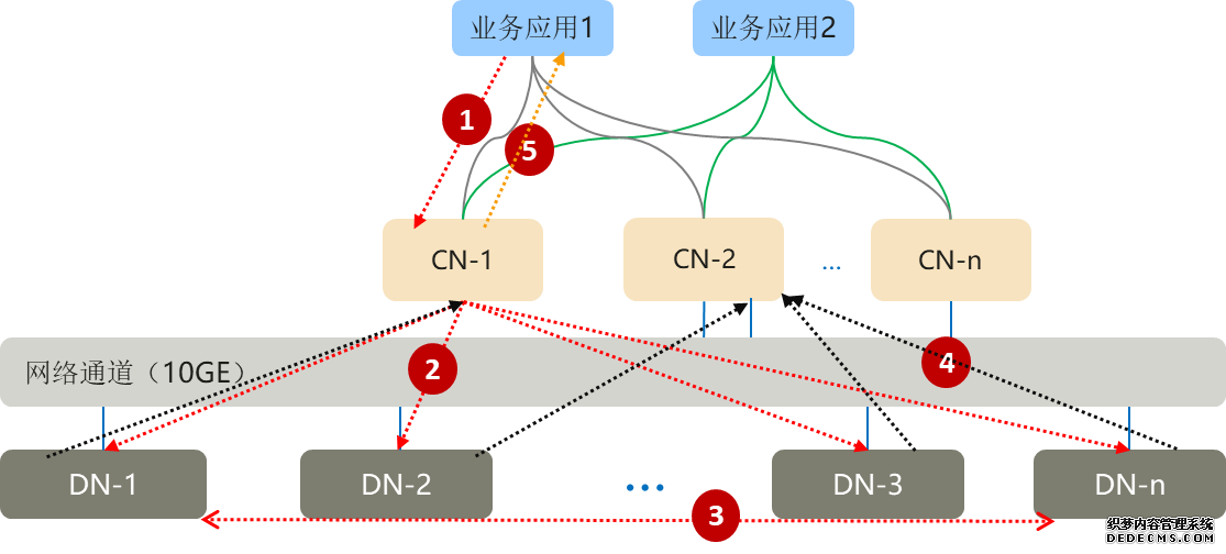 GTM-Lite 技术示意 当事务开始时,根据事务隔离级别的不同,从 GTM-Lite 获取一个 CSN 值,作为这个事务的查询快照点(如果是可重复读,只需要在事务开始时获取一次 CSN 值,如果是读已提交,每次 SELECT 时都需要重新取一次 CSN 值)。 当事务提交时,向 GTM-Lite 申请一个新的 CSN 值,作为这个事务提交 CSN 值,并记录到事务提交记录中。 GTM-Lite 技术通过 CSN 提交序列号进行可见性判断,无需耗费大量计算资源来遍历列表;无锁化原子操作提供 CSN 序列号,无需锁等待;节点间事务交互仅需要一个 CSN,网络开销跟事务规模无关。在保证事务全局强一致的同时,提供高性能的事务处理能力,避免了单 GTM 的性能瓶颈。 分布式查询优化1. 分布式执行 GaussDB 是如何处理分布式数据库集群中的业务应用 SQL 的呢? 1)业务应用的 SQL 会下发给 CN 节点; 2)CN 利用数据库的优化器生成分布式的执行计划,每个 DN 会按照执行计划的要求处理数据; 3)数据基于一致性 Hash 算法分布在每个 DN,因此 DN 在处理数据的过程中,可能需要从其他 DN 获取数据,GaussDB 提供三种 stream 流(广播流 broadcast、聚合流 gather 和重分布流 redistribute)实现数据在 DN 间的流动; 4)DN 将结果集返回给 CN 进行汇总; 5)CN 将汇总的结果返回给业务应用。