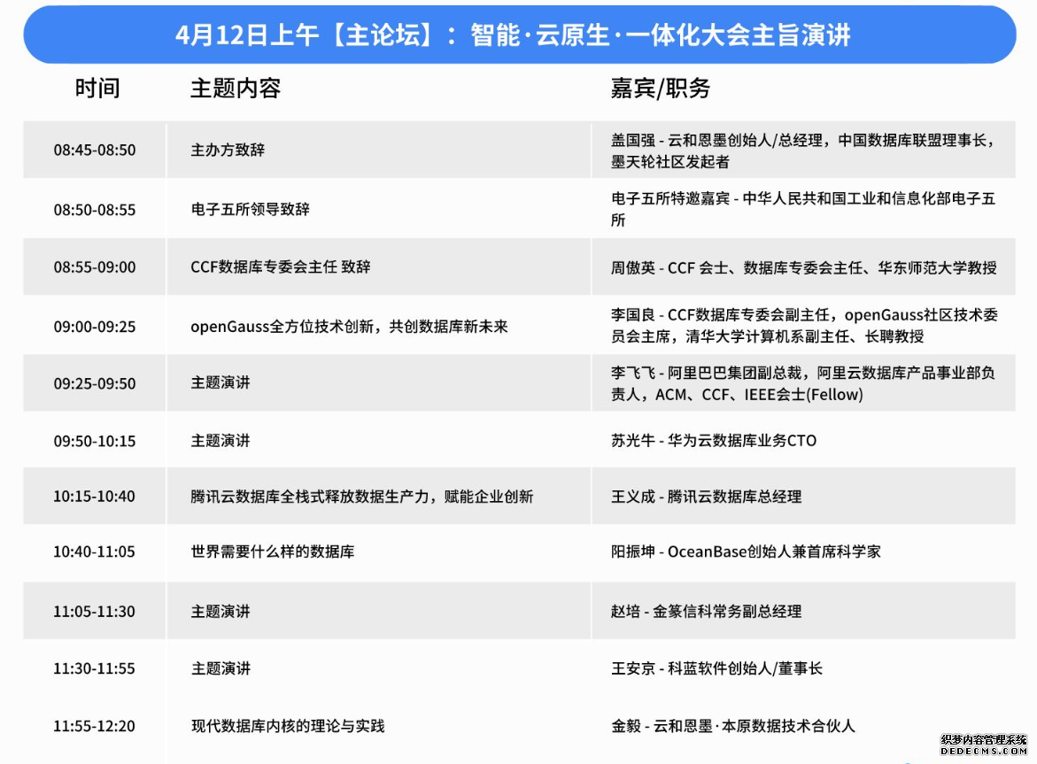 龙腾四海内,风云际会时。由墨天轮数据社区和中国数据库联盟(ACDU)主办的第十三届数据技术嘉年华 将于 2024 年 4 月 12 日至 13 日在北京新云南皇冠假日酒店盛大召开。本次大会的主题是“智能·云原生·一体化——DB 与 AI 协同创新,模型与架构融合发展” 。 80 余位行业领袖、技术精英、实践者和生态布道者将齐聚一堂,共同探讨数据技术的未来趋势。他们将在大会上带来 1 场主论坛和 12 场分论坛的精彩演讲,内容涵盖数据技术的各个方面,从前沿理论到实践应用,从技术创新到生态构建,全方位、多角度地展现数据技术的魅力。今天我们将为大家一一揭晓本届嘉年华全议程!(文末含免费参会福利)