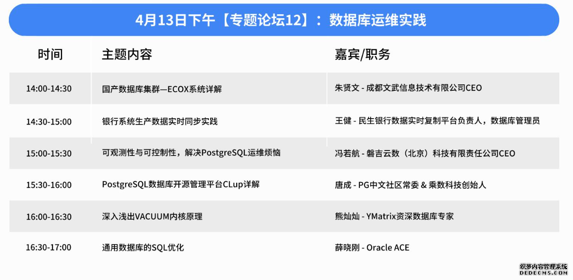 这些演讲嘉宾都是在 NoSQL 数据库领域有着丰富经验和深入研究的专家。他们的演讲将为参会者提供关于 NoSQL 数据库最新技术趋势、架构设计和实际应用的深入见解。通过这些专家的分享,参会者将能够了解如何利用 NoSQL 数据库技术来满足现代数据管理的多样化需求,为自己的技术发展和企业创新找到新的思路和方法。 专题论坛 12:数据库运维实践随着数据库平台化和自动化技术的发展,数据库运维也在不断演进和优化。本专题将聚焦于数据库运维领域的最佳实践,深入探讨针对商业、开源、国产数据库系统的优化和排错经验,帮助参与者更好地应对数据库运维中的挑战和问题。