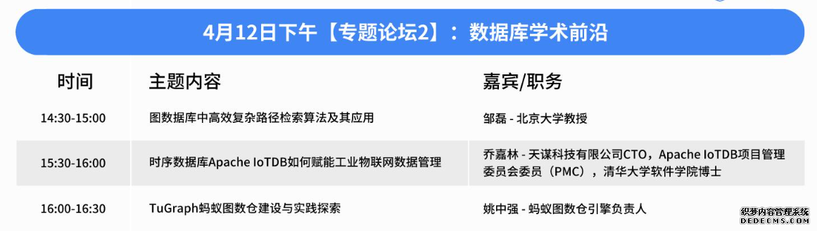 这些演讲将为参会者提供关于数据库内核创新的深刻见解,包括新技术的应用、性能优化的策略、以及开源数据库的发展等。通过这些专家的分享,参会者将能够获得最新的行业知识,了解数据库内核技术的最新进展,并为自己的技术发展找到新的方向。 专题论坛 2:数据库学术前沿数据库行业中学术研究不仅引领着技术的进步和创新,还为解决行业面临的各种挑战提供了理论支持。业内顶尖教授、院士以及高校学者将汇聚于此,分享最新研究成果及前沿技术动态。让我们一同在学术的星空中彼此启迪,拓展技术边界,感受全面而深刻的科研魅力。