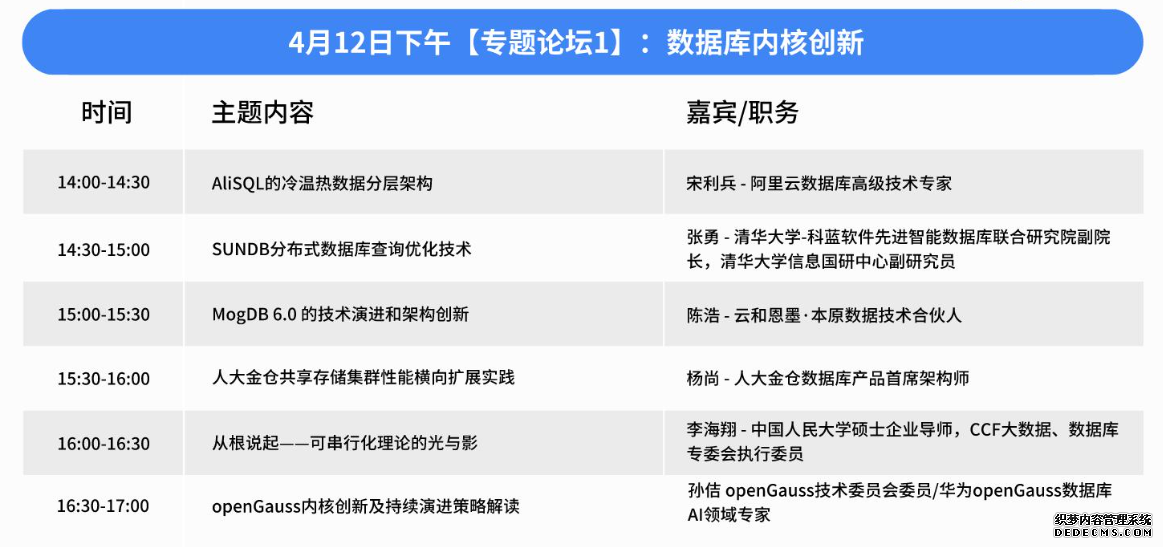 这些演讲嘉宾都是在数据库领域有着丰富经验和深厚知识的专家。他们的演讲将为参会者提供关于智能、云原生、一体化技术在数据库领域应用的深刻见解,帮助参会者了解最新的行业趋势和技术发展,为自己的技术发展和企业创新找到新的方向。 专题论坛 1:数据库内核创新作为技术发展的核心引擎,内核创新驱动着系统和软件的不断演进。本专题聚焦于压缩、索引、优化器、分布式和可观测性等关键领域,探讨如何推动计算机系统的性能、效率和可维护性的提升,通过对内核的创新来解决当今数据库行业中面临的挑战。