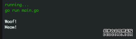 请问上面的代码中,输出的结果是什么? 答案解析:在上面的代码中,我们定义了一个 Animal 接口,它有一个 Speak 方法。然后,我们定义了 Dog 和 Cat 两个结构体,分别实现了 Animal 接口的 Speak 方法。 接着,在 main 函数中,我们创建了一个 Animal 类型的切片,其中包含了一个 Dog 对象和一个 Cat 对象。然后,我们使用 for 循环遍历这个切片,调用每个对象的 Speak 方法,并输出它们返回的字符串。 因为 Dog 和 Cat 都实现了 Animal 接口的 Speak 方法,所以它们都是 Animal 类型的对象,可以被放入 Animal 类型的切片中。在遍历切片时,我们调用每个对象的 Speak 方法,它们分别返回"Woof!"和"Meow!",然后被输出。 因此,输出的结果应该是: